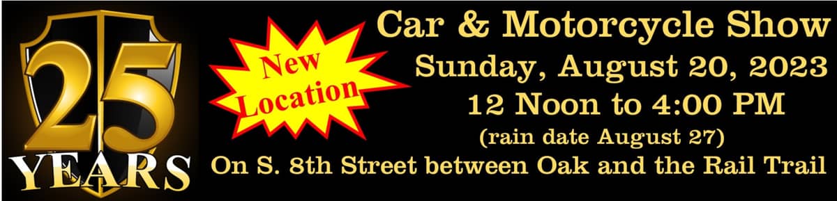 Car & Motorcycle Show will go on! August 20 on S. 8th St. between Oak & Rail Trail
