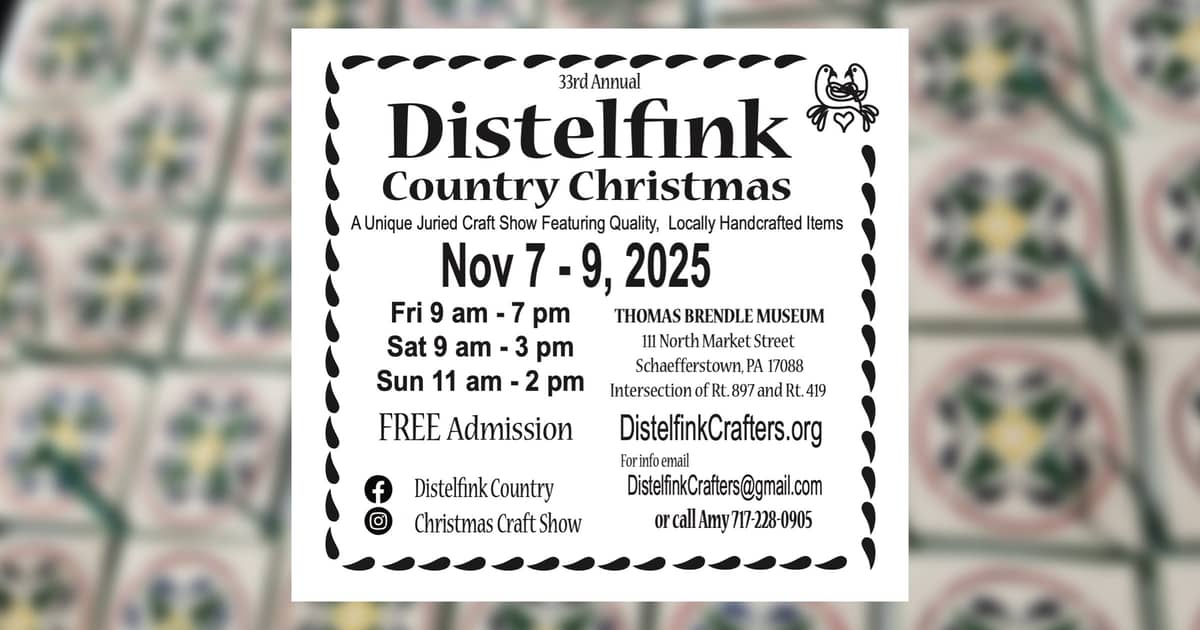 The Distelfink Country Christmas juried craft show will feature handcrafted works from more than 50 vendors Nov. 7-9 in Schaefferstown with free admission.