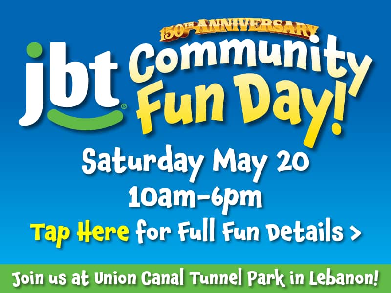 JBT’s 150th Anniversary Community Fun Day is open to everyone and takes place on Saturday, May 20, from 10 a.m. to 6 p.m. at Union Canal Tunnel Park in Lebanon as part of the 33rd Annual Union Canal Days.
