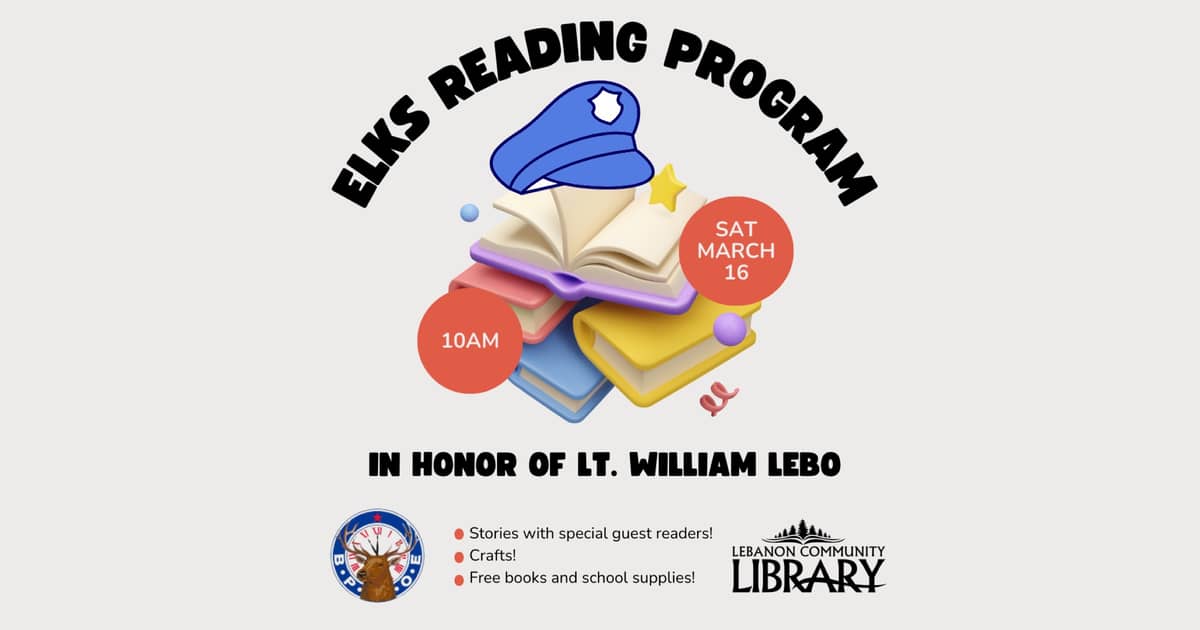 The Lebanon Elks Lodge 631 and the Lebanon Community Library will host the 2nd Annual Elks Reading Program in Honor of Lt. William Lebo on Saturday, March 16, at 10 a.m.