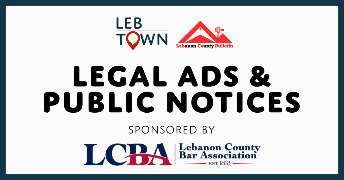 Here are the latest legal ads and public notices published by LebTown and LebCo Bulletin for the week of July 1. Sponsored by the Lebanon County Bar Association.