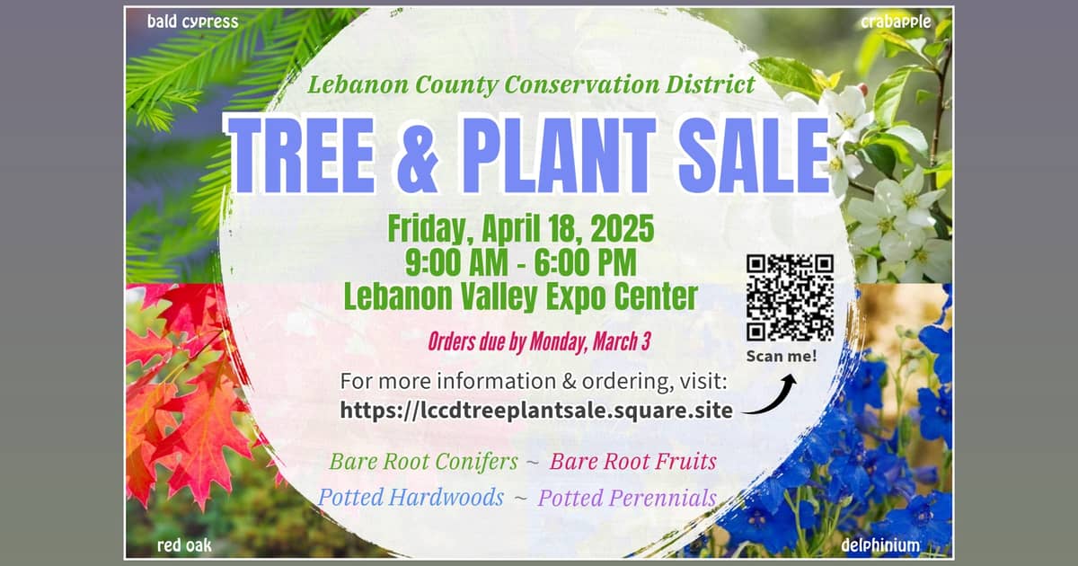 The Lebanon County Conservation District is accepting orders through March 2 for its annual tree and plant sale featuring all-native species, with pickup scheduled for April 17 at the Lebanon Valley Expo Center.