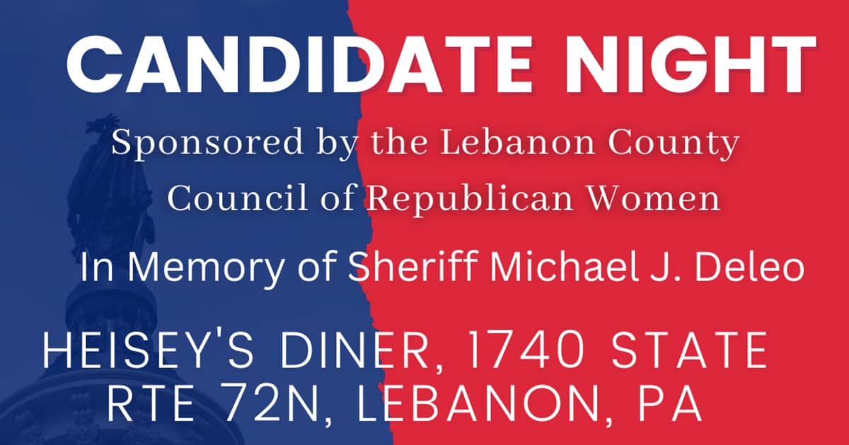 The Lebanon County Council of Republican Women is hosting a Republican County Candidates Night on Tuesday, May 2, from 6 to 8 p.m. at Heisey’s Diner, located on Route 72 N.