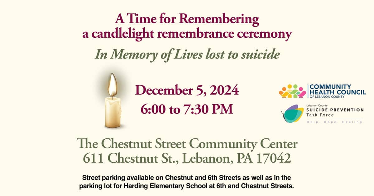 The Lebanon County Suicide Prevention Task Force hosts “A Time for Remembering: A Candlelight Remembrance Ceremony.”
