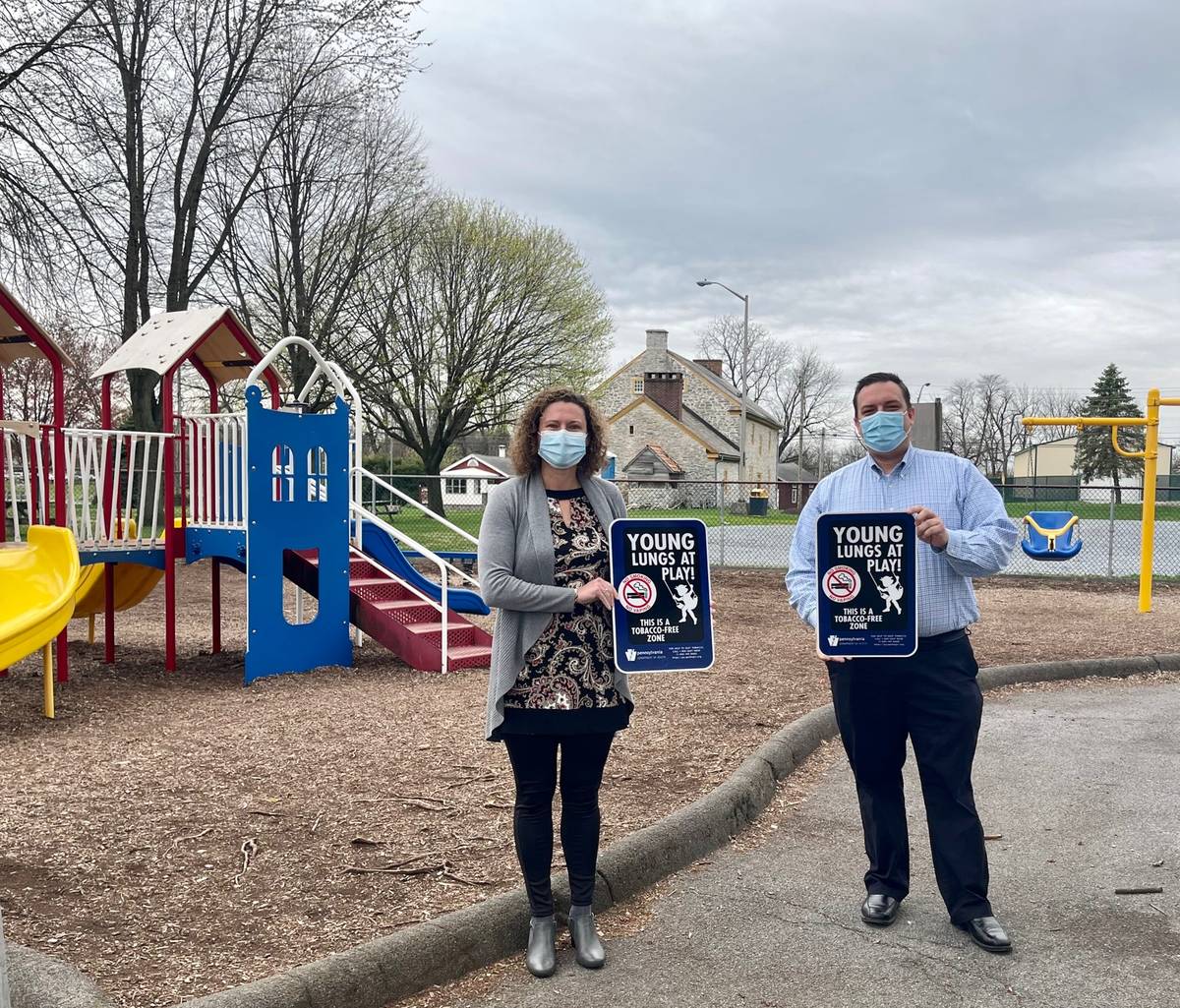 The Young Lungs at Play initiative, administered by Lebanon Family Health Services through a grant from the American Lung Association, assists municipalities, parks and playgrounds to provide tobacco and vape-free recreation. This year, Myerstown Borough became the most recent municipality to join the growing list of Lebanon County Young Lungs at Play participants. “Myerstown Borough has 26.64 acres of land devoted to recreation for the enjoyment of our citizens and visitors,” stated Michael McKenna, Myerstown Borough Manager. “We are grateful to Lebanon Family Health Services for bringing the Young Lungs at Play program to Lebanon County and to Myerstown Borough. We are proud to be a partner and be a part of the growing list of communities that are making an effort to protect the health of both our children and the environment from the dangers of secondhand smoke,” McKenna concluded.